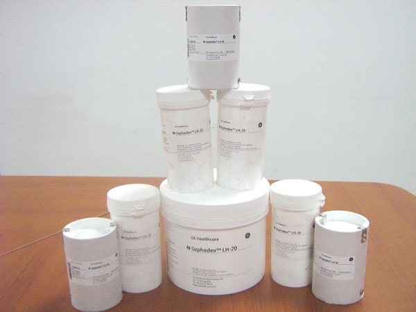全稱為羥丙基葡聚糖凝膠。Sephadex LH-20為Sephadex G-25(葡聚糖凝膠按交聯度分類的其中一種商品型號)經羥丙基化處理后得到的產物,此時,葡聚糖凝膠分子中的葡萄糖部分將與羥丙基結合成下列醚鍵形式: -OH → -OCH2CH2CH2OH ,與Sephadex G比較,Sephadex LH-20分子中 -OH 基總數雖無改變,但碳原子數所占比例卻相對增加了,所以Sephadex LH-20不僅可在水中應用,也可在極性有機溶劑或他們與水組成的混合溶劑中膨潤使用。