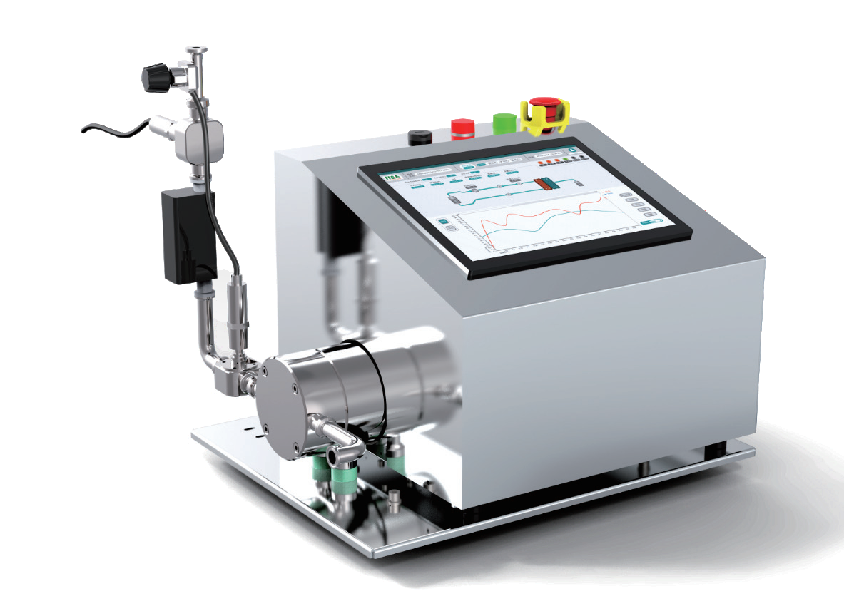 QuikSep SF簡易超濾系統設計全面符合cGMP,采用德國QuattroFlow隔膜泵,控制界面采用彩色觸摸屏,顯示泵速等信息,能實時監測壓力及TMP變化,透過端紫外變化,并可設置各參數報警值,也可實現恒壓運行或恒定TMP運行,保證工藝可控性