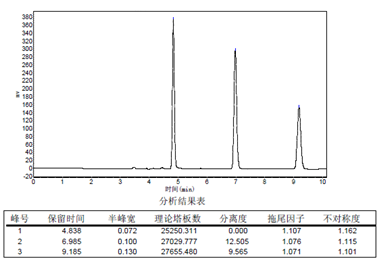 5. 良好的峰形對稱性:拖尾因子控制在0.95-1.20。6. 壓力適中,各種HPLC機器均能出色使用。