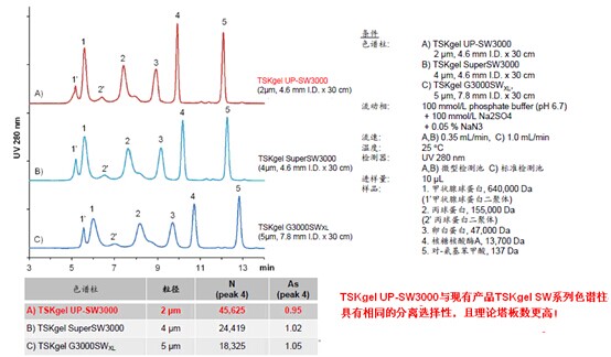 2.?與TSKgel?SW系列色譜柱具有相同的填料表面特性。