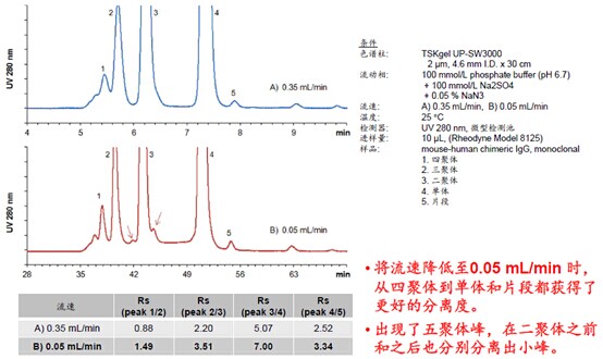 ?????? 抗體藥物中使用的單克隆抗體,在生產(chǎn)、貯藏或運(yùn)輸過(guò)程中可能會(huì)形成二聚體等凝聚物,存在引發(fā)不良反應(yīng)的風(fēng)險(xiǎn)因素,故在質(zhì)量控制中采用體積排阻色譜法(SEC)對(duì)單克隆抗體進(jìn)行分離分析。現(xiàn)有的TSKgel?G3000SWXL色譜柱常用于此用途,但仍需要更高分離度以及更短分析時(shí)間的SEC分析技術(shù)。現(xiàn)在2μm粒徑的高性能SEC?色譜柱TSKgel?UP-SW3000已實(shí)現(xiàn)了商品化,給您帶來(lái)更高效更快捷的分離體驗(yàn)!