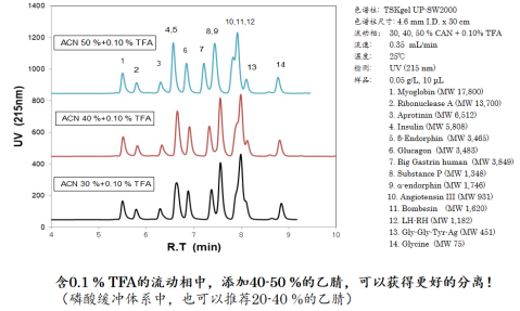 0.1 % TFA的流動相分析疏水性高的多肽時,如果洗脫較遲,可以推薦使用醋酸溶液等