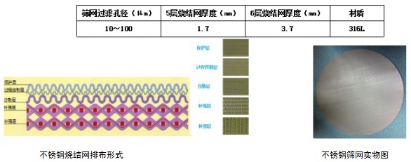 上下篩網為多層結構的不銹鋼燒結網。 與聚乙烯篩網不同:聚乙烯篩網為疏水性質,需要在裝柱前充分潤濕,而不銹鋼篩網則不需要提前潤濕。不銹鋼燒結網由保護層、過程控制層、分散層及23層補強層燒結而成。