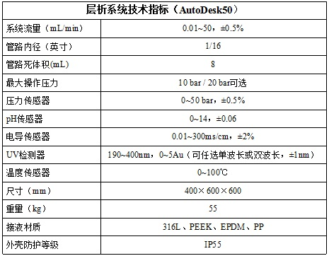 AutoDesk全自動層析系統,應用于實驗室級別工藝開發及小試實驗,有AutoDesk50AutoDesk100兩種規格可選,需外接電腦。